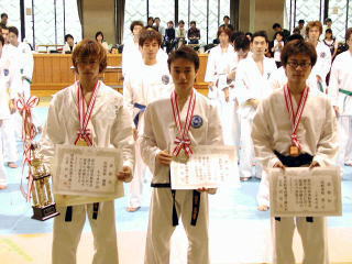 優勝:妹尾 将吾(渋谷) 嬉しいです。しかし優勝はしましたが、これに満足せず、 全日本優勝に向けて精進します。 準優勝:河田 泰弘(愛知) スタミナに勝てません。懲りずに頑張ります。 3位:丸山 穣(神大平塚) 今回は3位でしたがメダルの重さに 匹敵する価値のある試合ができました。 敢闘賞:井上鉄朗(千葉船橋) 疲れました…。 後輩に負けたので次はリベンジ頑張ります。 |