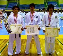 優勝 藤田俊太郎 減量が辛かった。ビタミンは大切だ! 準優勝 上田竜作 1年に負けて超ブルー、次は優勝する!!! 3位 平河内竜樹 入賞嬉しく思います。 スタミナ不足を痛感したので、スタミナをつける努力をしたいです。 4位 齋藤隆倫 試合前のUP不足。 思いどうりに体が動かず、いつもの組手が出来なかったのが心残りです。 ![]() |