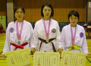![]() 優勝:榊原アカネ(大田支部) 朴南順先輩が勝ち残っていたのでここまで頑張れた。 最近、盛島道場では女子部が増えて刺激があり、練習に力をいれることができた。 見守ってくれた同門の男子の皆さん、そして盛島先生に心からお礼を申し上げます。 準優勝:朴 南順(大田支部) スタミナがなくて思うように試合が出来なかった。 盛島先生に申し訳がたちません。 3位:井上めぐみ(神奈川大学横浜校テコンドー部) 次回は今回以上の試合ができるように頑張りたいです。 3位に入ると思っていなかったので、すごく嬉しいです。 ![]() |